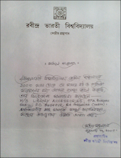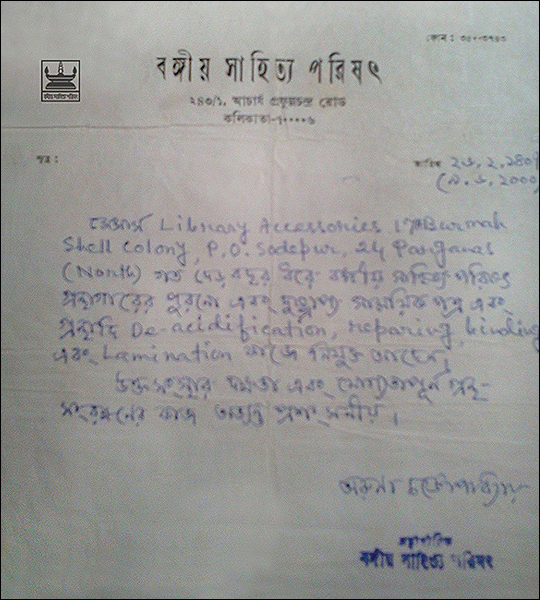 >> Acknowledgement letter from Bangiya Sahitya Parishat Library