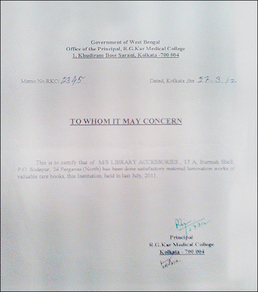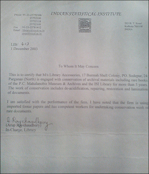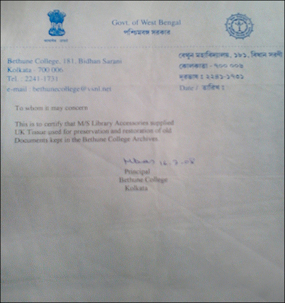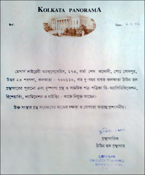 >> Acknowledgement letter from Bangiya Sahitya Parishat Library