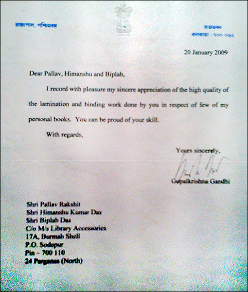 >> Acknowledgement from West Bengal Governor